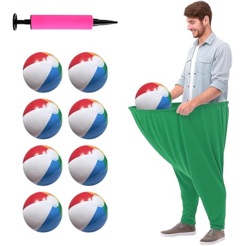 Das Oma Hose Gartenspiel ist ein lustiges und unterhaltsames Spiel für alle Altersgruppen. Es besteht aus einer großen, auffälligen Oma-Hose in grüner Farbe (Maße: 100 x 80 cm), 8 elastischen Bällen und einer Luftpumpe in zufälliger Farbe. Ohne zusätzliche Zubehörbestellung können Sie direkt losspielen und so schnell die lustige Atmosphäre bei Familienfeiern, Geburtstagsbashes oder Teambuilding-Events aufbauen.